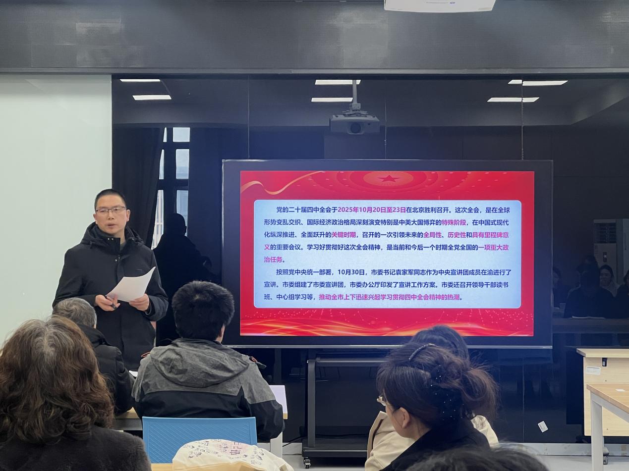 12月17日上午,365英国上市集团在茶园校区钧智楼A201会议室召开党的二十届四中全会精神宣讲会暨12月政治理论学习会。党委书记陈龙国主持会议。