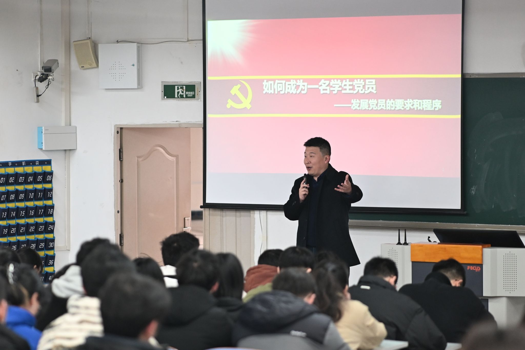 崔智勇同志详细介绍了入党的具体要求和条件,强调“政治标准是首位”,并鼓励同学们积极向党组织靠拢,认真撰写入党申请书。最后,他重申了党员发展过程中的重点环节,提醒同学们严格对标党员标准,以实际行动争取早日加入党组织。