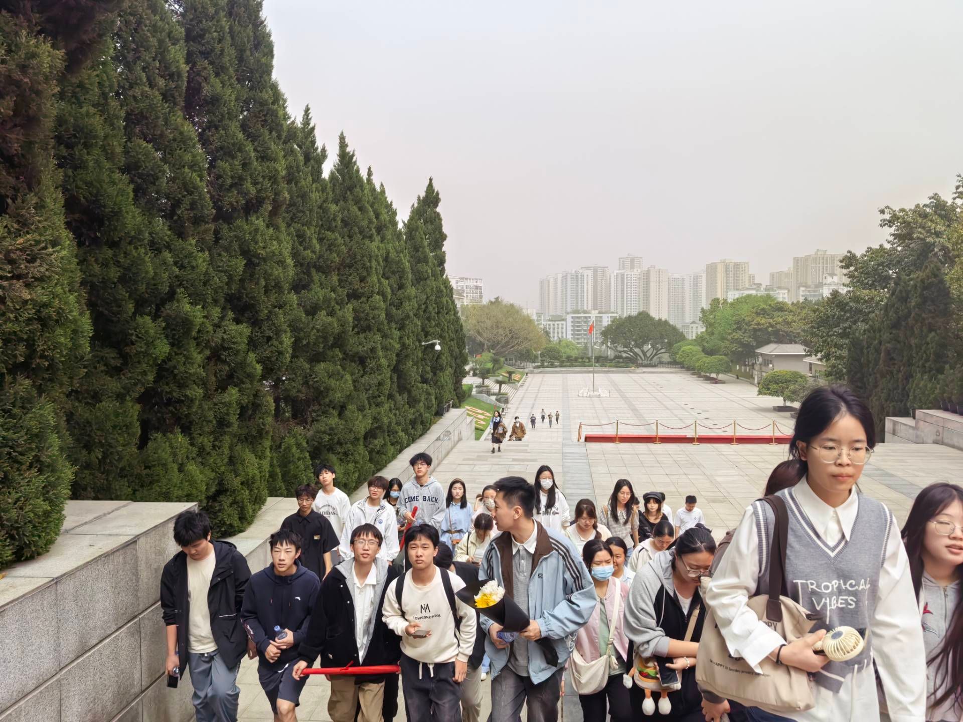 抵达歌乐山后,全体师生怀着崇敬与肃穆之情来到烈士墓前。辅导员刘畅老师代表全体同学,向长眠于此的革命烈士敬献了一束洁白的菊花。菊花傲霜高洁,它不仅是对烈士的缅怀与追思,更象征着革命先烈们崇高的精神品质与坚定的理想信念。敬献花束后,全体师生低头默哀一分钟,在这静谧的一分钟里,微风拂过,仿佛在诉说着那段波澜壮阔的革命历史。默哀结束,师生们带着这份对革命先烈的敬意,继续开启这场意义非凡的思政实践教育活动。