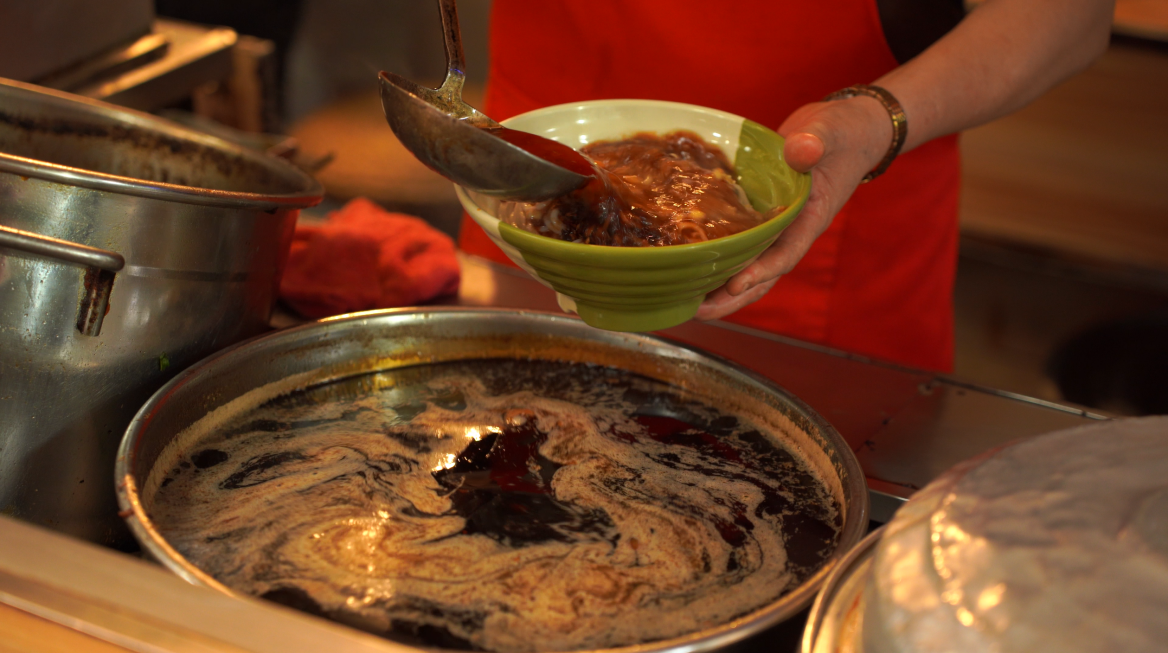 在采访交流之后,团队成员们终于迎来了品尝环节。热气腾腾的少水粉端上桌,粉条晶莹剔透,配以葱花、辣椒油和卤蛋,色香味俱全。大家品尝后纷纷表示,粉质细腻爽滑,酱料醇厚,风味独特,令人回味无穷。“这碗粉不仅好吃,更让我感受到一种浓浓的乡土情怀。”