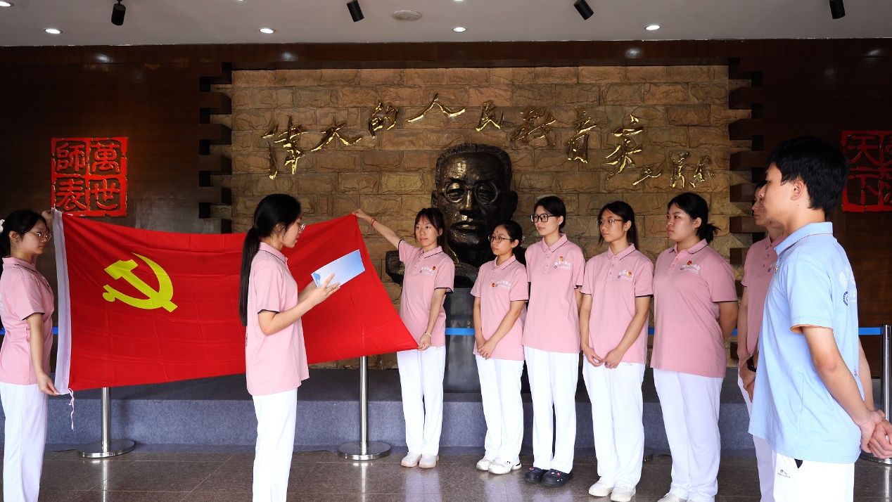 离开博物馆,实践团一行前往陶行知先生纪念馆。在故居陈列馆前,同学们面向团旗庄严宣誓,重温入团誓词,铿锵誓言中饱含对“爱国、进步、民主、科学”精神的践行承诺。在党史学习环节,围绕“青年如何为教育强国作贡献”的讨论中,大家纷纷表示,要以陶行知先生“教育救国”理念为指引,接过“捧着一颗心来,不带半根草去”的精神接力棒,在新时代教育强国征程中贡献青春力量。站在育才公司新旧址之间,同学们更清晰地认识到:教育的火种跨越时空,而青年的责任便是让这份初心在当代延续。
